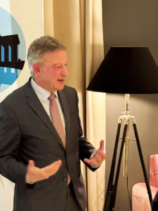 Botschafter Potzel gab den Gästen spannende Einblicke in die aktuellen deutsch-schweizerischen Beziehungen und berichtete von seinen Eindrücken des diesjährigen Weltwirtschaftsforums in Davos. Sein Dank galt allen Organisationen und Vereinen, die sich mit großem Engagement für die deutschsprachige Gemeinschaft in der Romandie einsetzen.